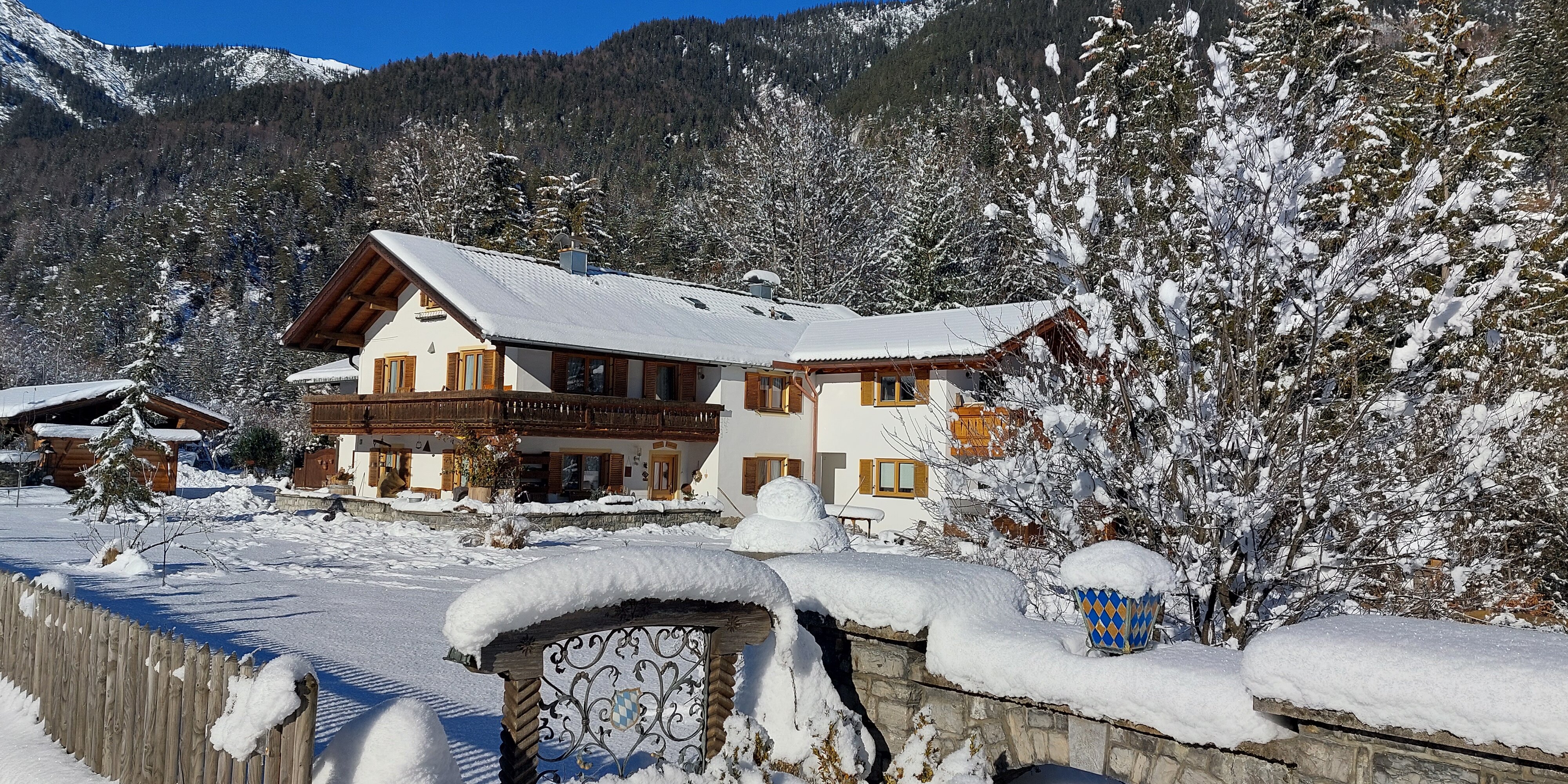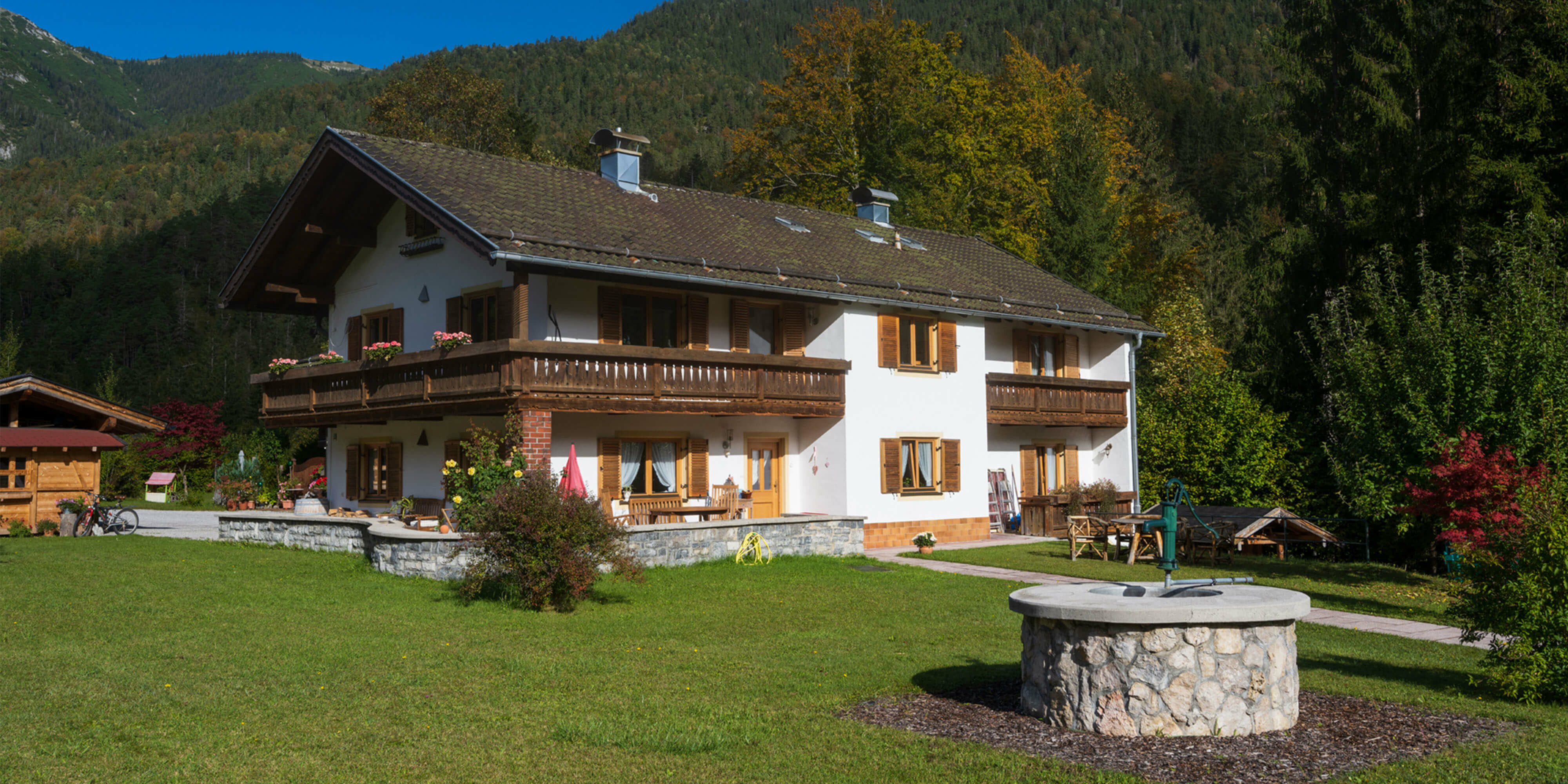 Unser ländliches Haus wurde im Jahre 1956 von den Großeltern erbaut. Der Großvater Josef Ebner, gelernter Maurer, setzte in mühevoller Handarbeit Stein um Stein aufeinander, während seine Frau Rosina den Sand für den Mörtel aus der am Grundstück angrenzenden Loisach schaufelte.